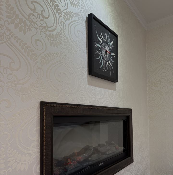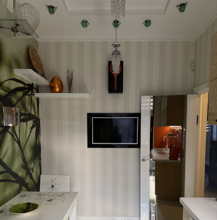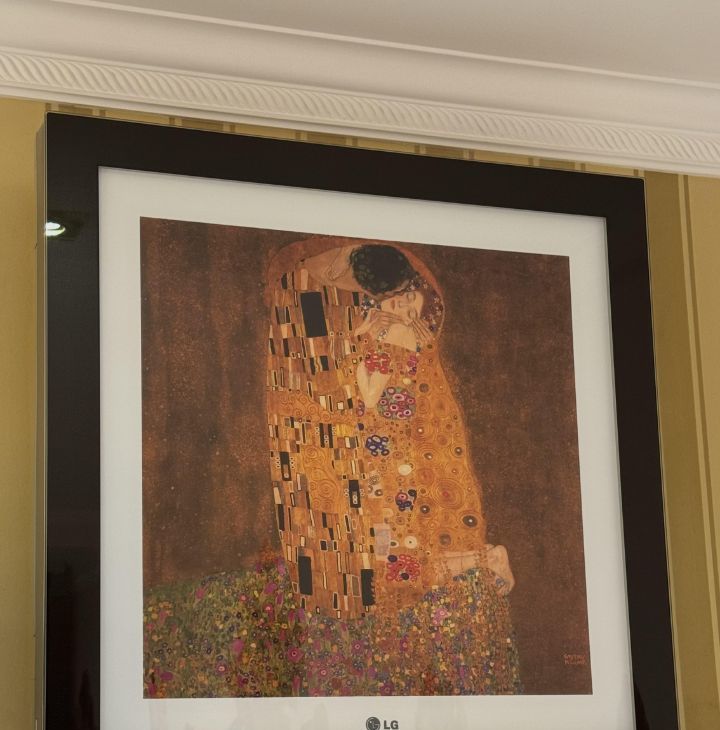 Покупателю остается все, что на фото: телевизоры в каждой комнате, электрокамин, водонагреватель, плита, духовой шкаф, стиральная машина, холодильник, два кондиционера (серый Kentatsu — в зале и в виде картины Густава Климта LG — в спальне). Мебель — вся, что на фото. А также напомним про личное парковочное место за шлагбаумом во дворе.