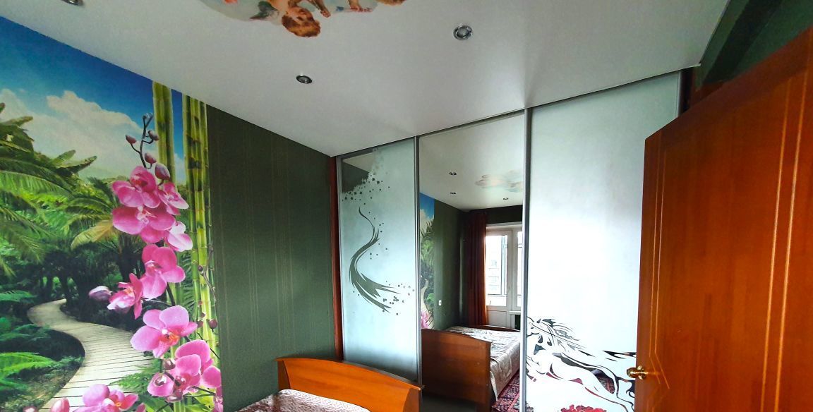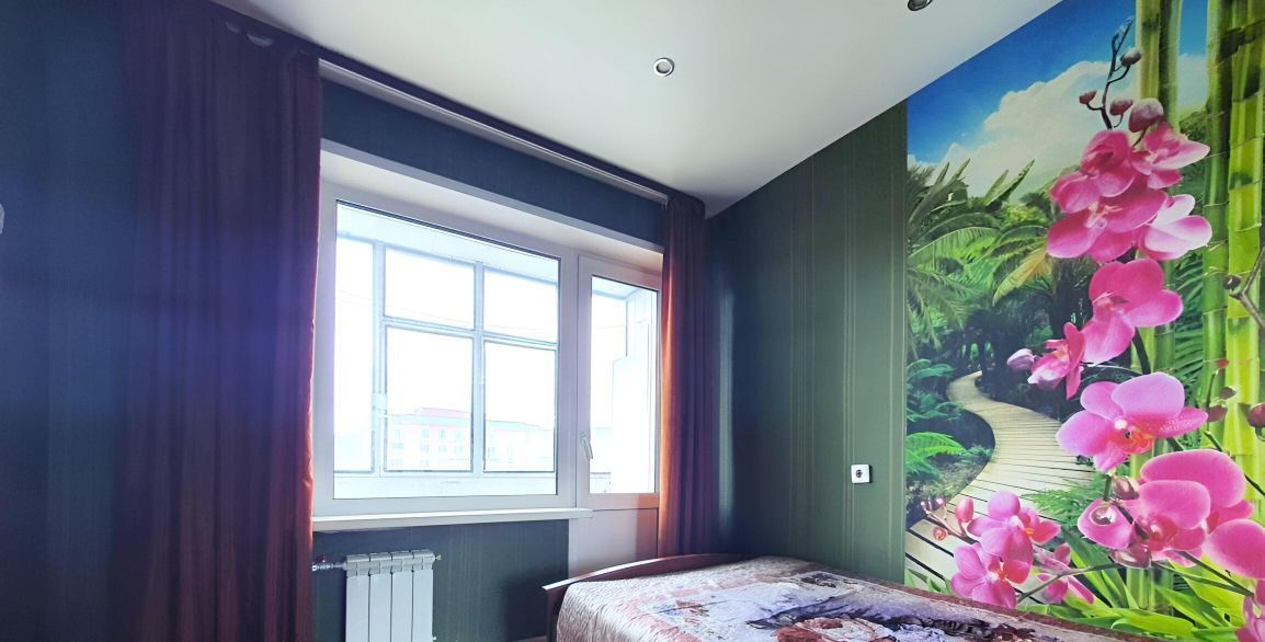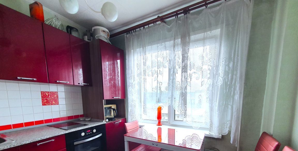 Кухня оснащена всей бытовой техникой. В зале стоит диван и 2 кресла, в спальне есть кровать и большой шкаф для хранения вещей. Из спатльни идет выход на застеклённый балкон.