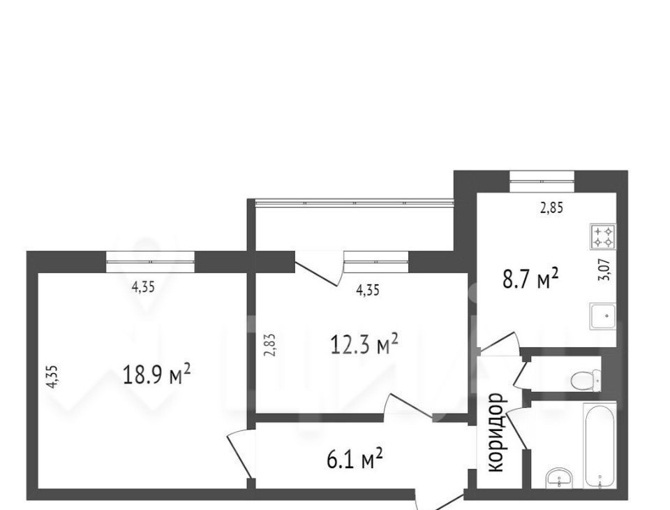 Студия Красноярский край, Красноярск просп. 60 лет Образования СССР, 56 (23.0 м²)