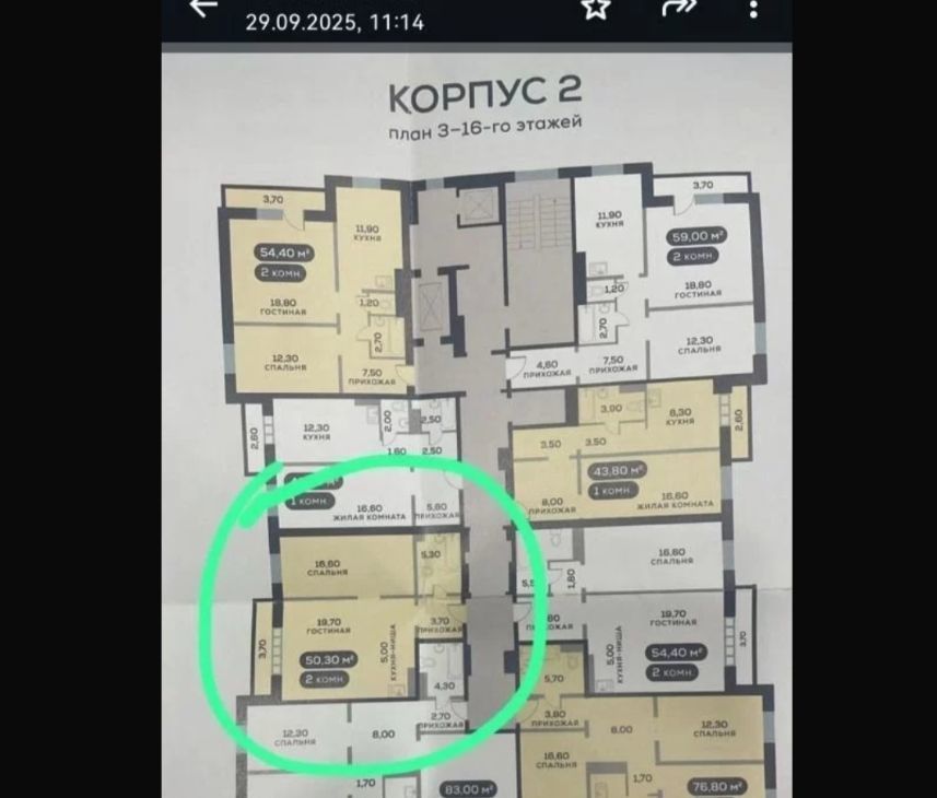 2-комнатная квартира: Красноярск, улица Дмитрия Мартынова, 18 (54.6 м²)