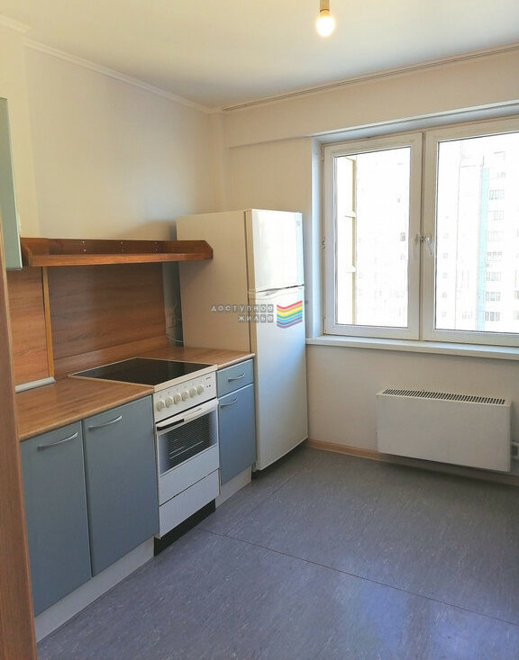 Имеется кухонный гарнитур, электро плита, холодильник.