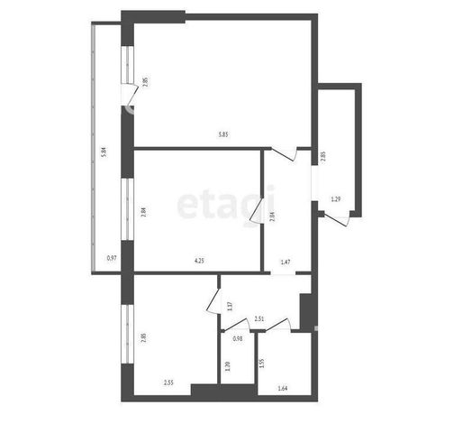 2-комнатная квартира: Красноярск, проспект 60 лет Образования СССР, 62А (51.5 м²)