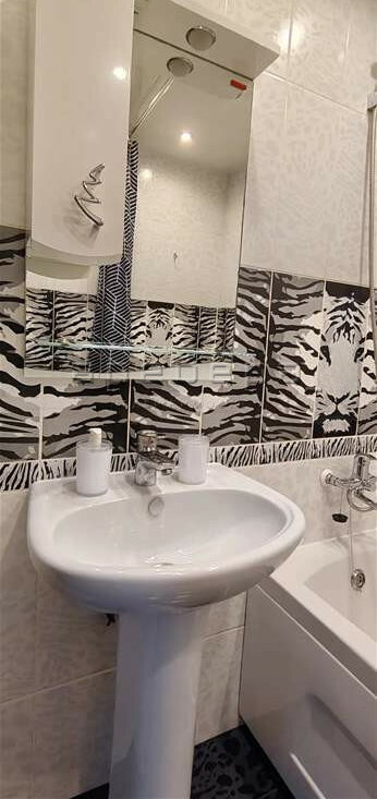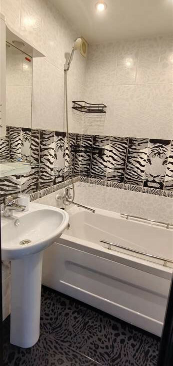 В квартире сделан современный ремонт, на полу - ламинат, санузел отделан кафелем.