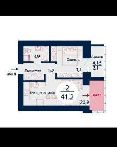 2-комнатная квартира: Красноярск, улица Авиаторов, 4Е (41.2 м²)