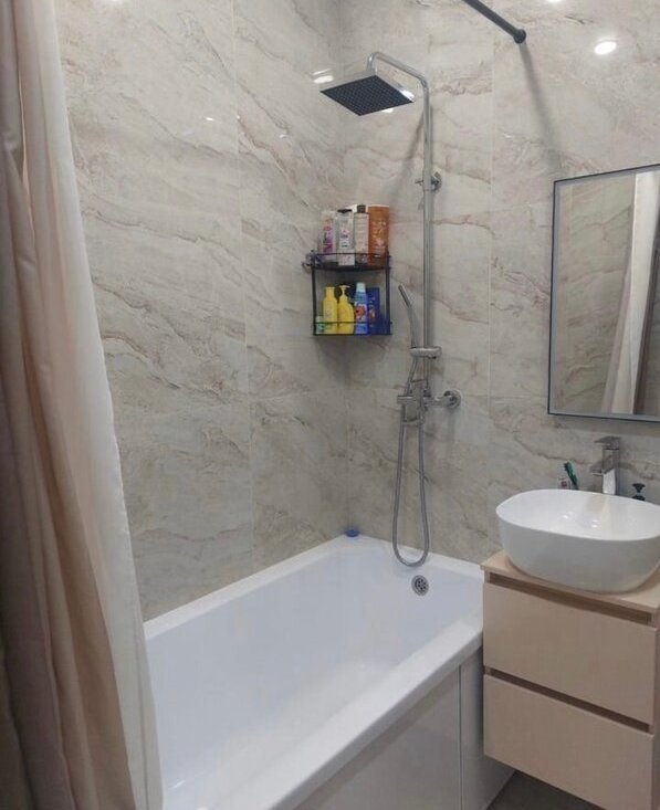 Caн узeл cовмещен в кафеле.