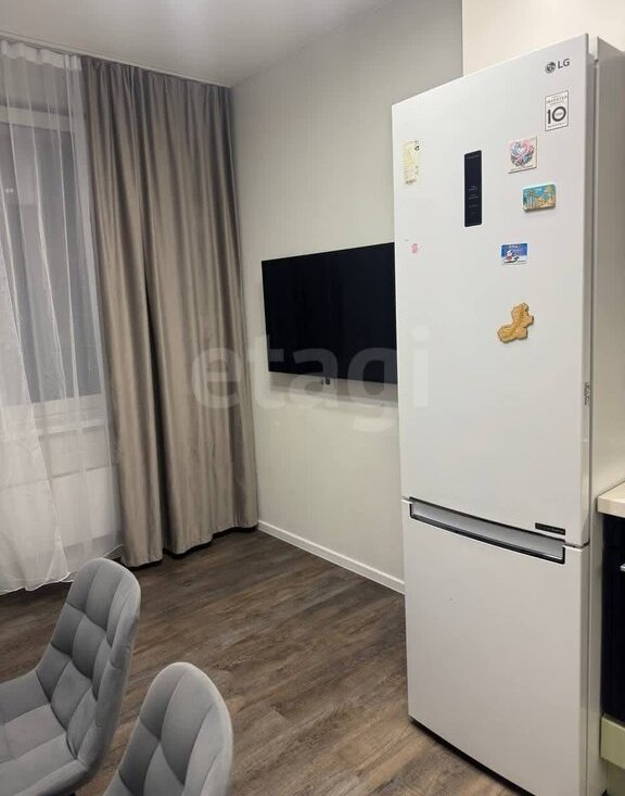 Дизайнерский ремонт создает уютную атмосферу. Кухня площадью 13м² оборудована современной техникой, включая холодильник и плиту. В кухне установлен кондиционер, а также имеется телевизор.