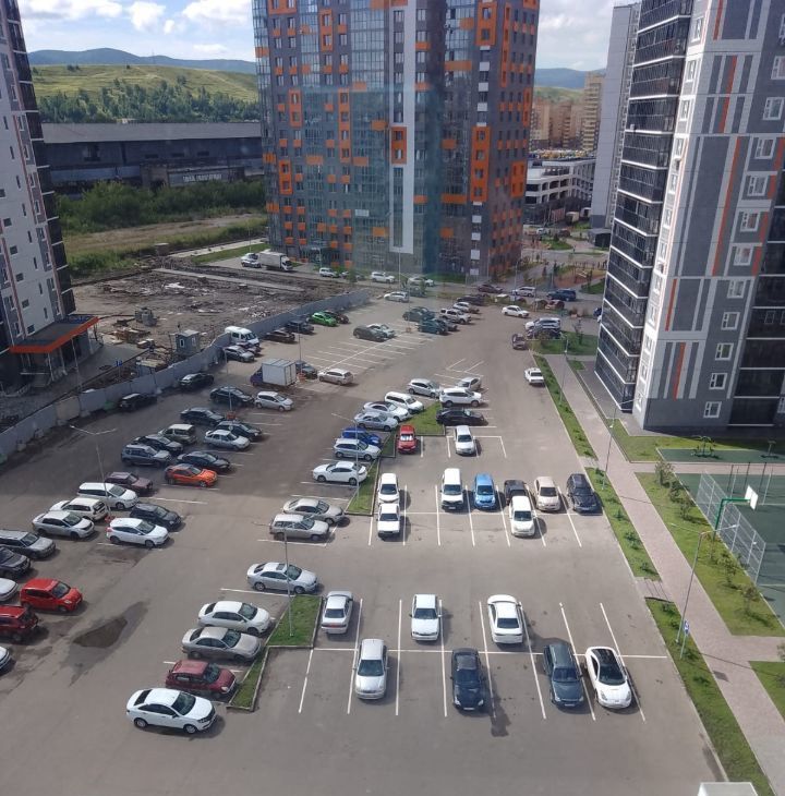 Рядом многоуровневая парковка.