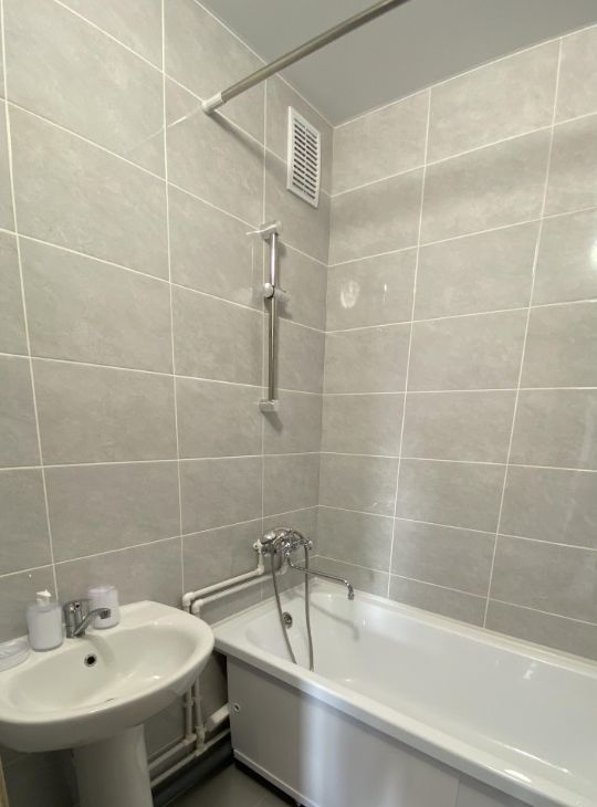 Ванная комната с удобной ванной. В квартире есть один отдельный санузел и балкон. Ремонт в ванной комнате и санузелке выполнен в кафеле.