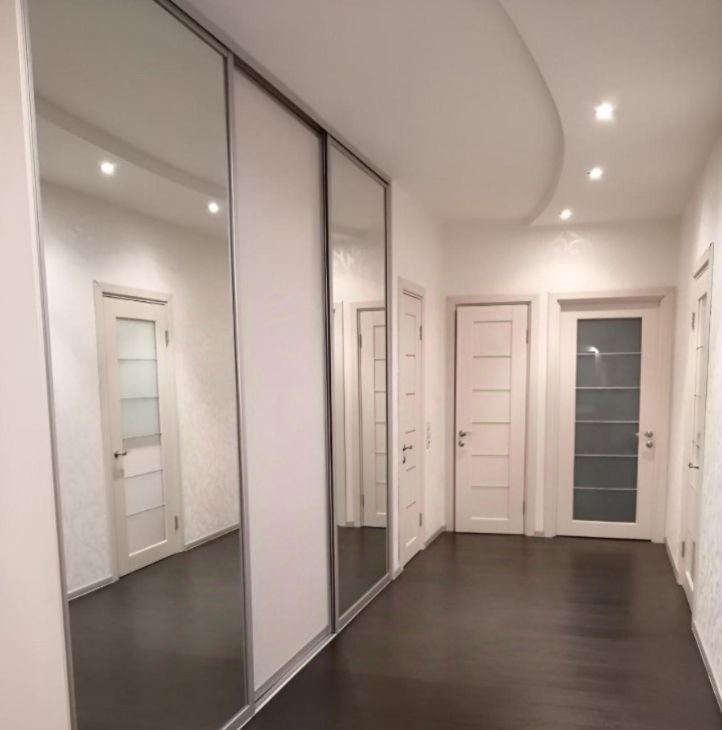 • Просторный холл с встроенной системой хранения и зеркальными шкафами — максимум света и визуального объёма