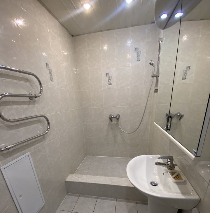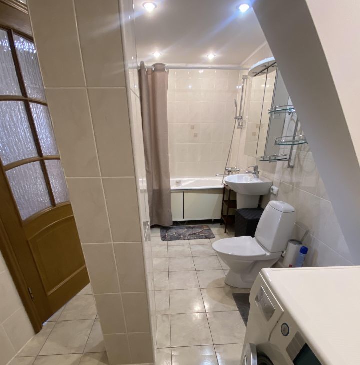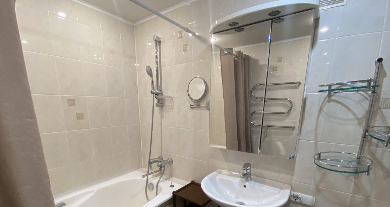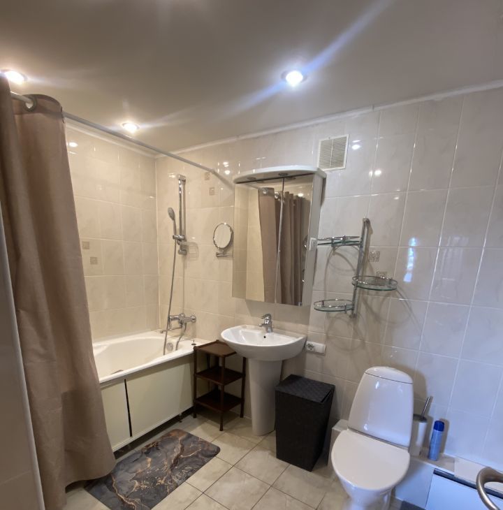В квартире есть всё необходимое для комфортной жизни. Просторная кухня обставлена современной мебелью и оснащена холодильником и посудомоечной машиной. В комнатах также есть мебель. Для вашего удобства два совмещенных санузла: один с ванной, другой с душевой кабиной. Также в квартире есть стиральная машина и телевизор.