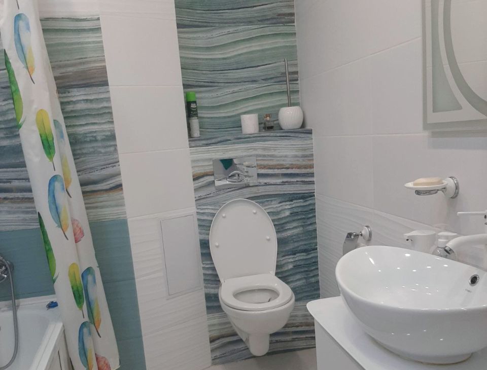 Ремонт был сделан для себя: в ванной современная сантехника, красивая дорогая плитка, в кухне встроенный гарнитур с встроенными плитой, духовым шкафом, посудомойкой, современным холодильником, в спальне полный гарнитур мебели Шатура ( кровать, тумбы, огромный угловой шкаф) ( есть возможность оставить всю мебель и технику)