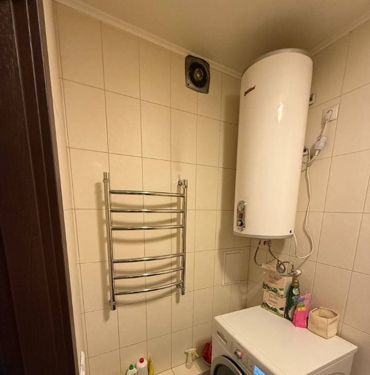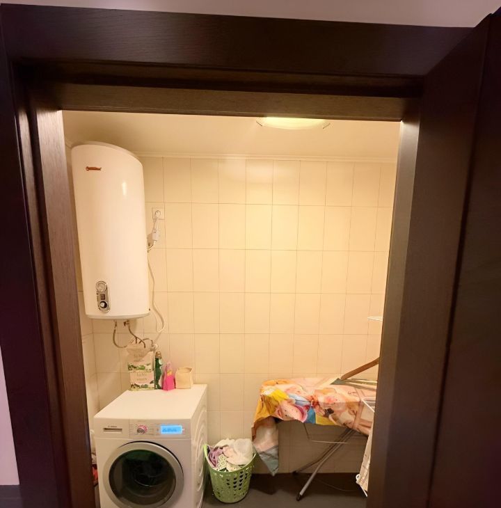 Санузел совмещенный, кафель известной итальянской фирмы Atlas Concorde, оборудован современной сантехникой Jacob Delafon, из ванной комнаты выход в техническую комнату, в которой расположены стиральная машина Bosh, водонагреватель, сушилки и гладильная доска.