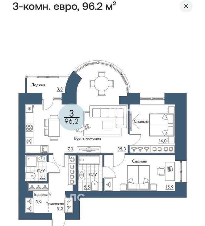 Продается просторная трехкомнатная квартира в Красноярске. Общая площадь квартиры составляет 96 квадратных метров, из которых 35 квадратных метров занимает кухня — идеальное место для семейных обедов и кулинарных экспериментов. Квартира расположена на 14 этаже 15-этажного кирпичного дома, что обеспечивает отличные виды на город.