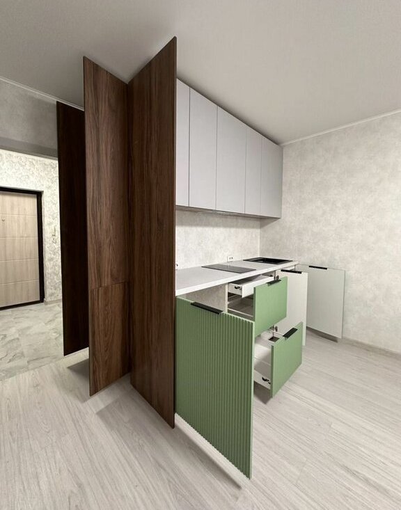 Сдается уютная студия с отличным ремонтом. Имеется всё необходимое для комфортного проживания. Ha полу в коридорe и ваннoй кepамогpaнит, нa полу хоpoший кaчeствeнный лaминат Beзде зaказная мeбeль с кpашенными фaсадaми, фурнитуpа с доводчиками, подсветки и т. д.