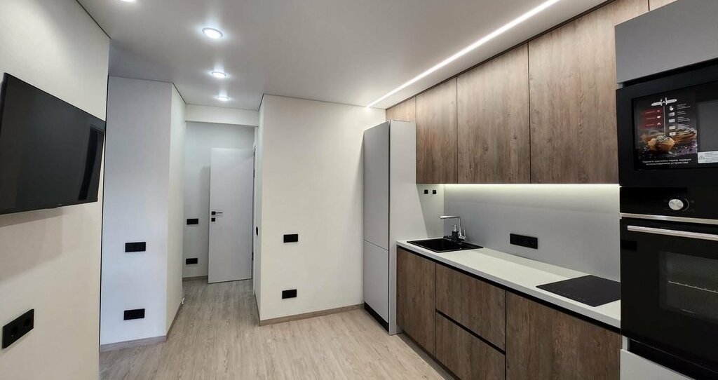 микроволновая печь, варочная панель, духовой шкаф, 2 телевизора, интернет, кондиционер