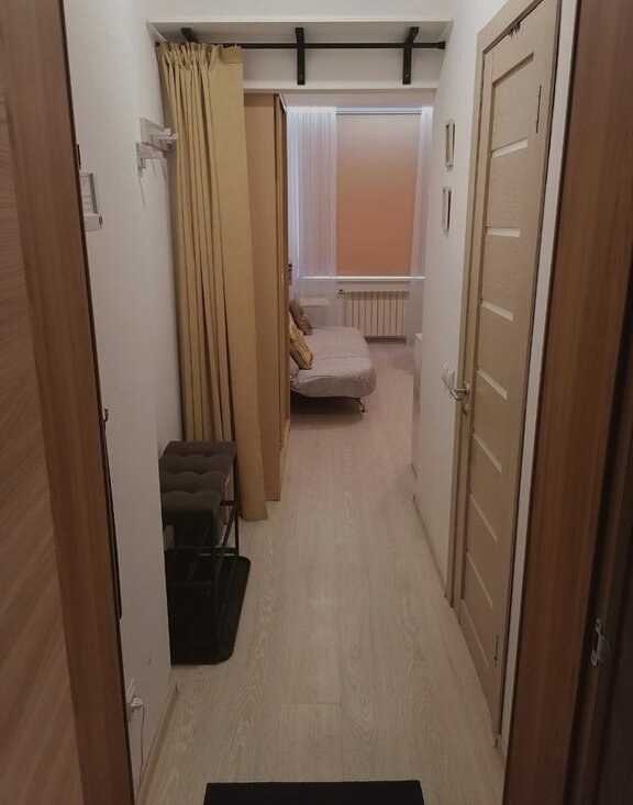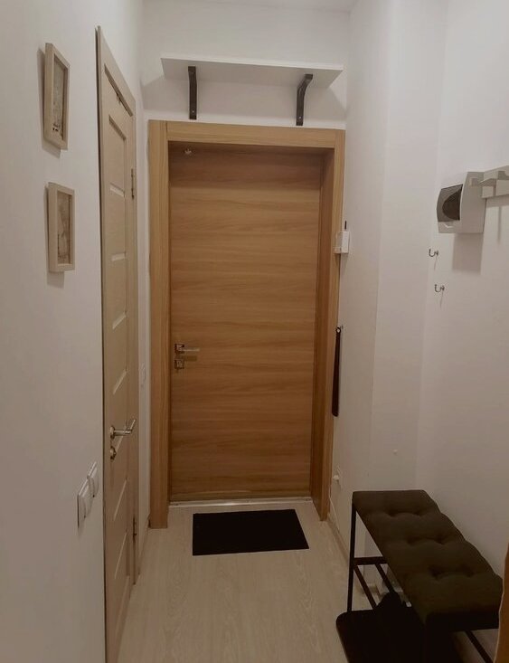 - прихожая: пуфик-подставка для хранения обуви (выдерживает более 100кг веса); крючки для ключей, полки для хранения вещей. Есть возможность подключить охранную сигнализацию за отдельную плату.