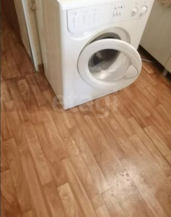 В квартире имеется: кухонный гарнитур, барная столешница, стулья, холодильник, микроволновка, диван, шкаф, стиральная машинка.