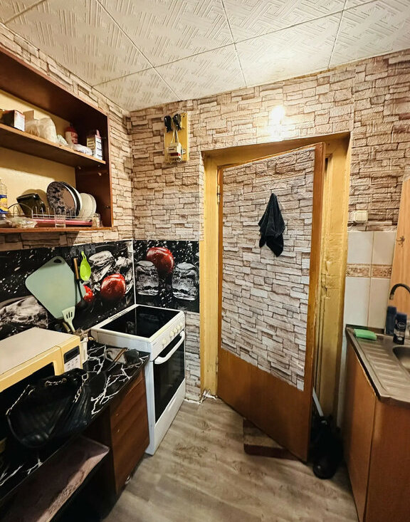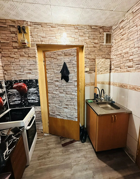 Квартира расположена на 4 этаже 5-этажного панельного дома 1968 года постройки. Общая площадь составляет 17 кв. м, из которых 10 кв. м — жилая площадь, 4 кв. м — кухня. Высота потолков — 2,5 м. Окна выходят на улицу. В квартире сделан косметический ремонт, поэтому можно заезжать и жить без дополнительных вложений.