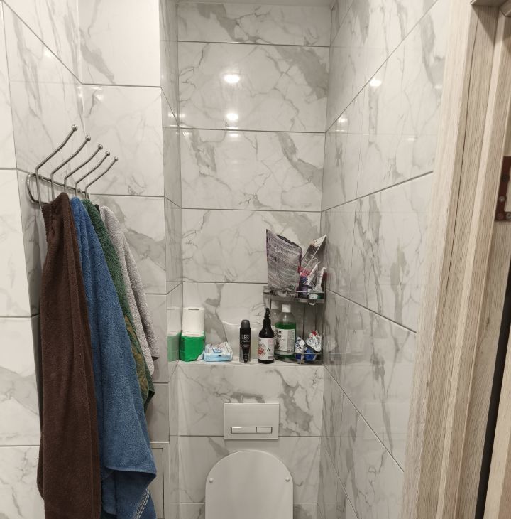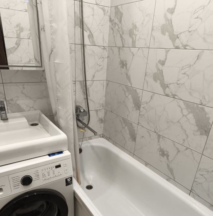 В ванной комнате установлены стиральная машина и бойлер на 10 л — можно принимать душ даже при отключении горячей воды.