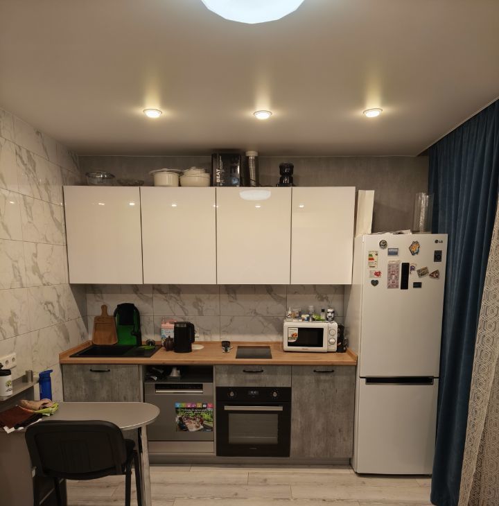 полностью оборудованную кухню со встроенной техникой: индукционная плита с двумя местами для готовки, духовка, микроволновая печь, холодильник и посудомоечная машина (вся техника в эксплуатации менее 2 лет);