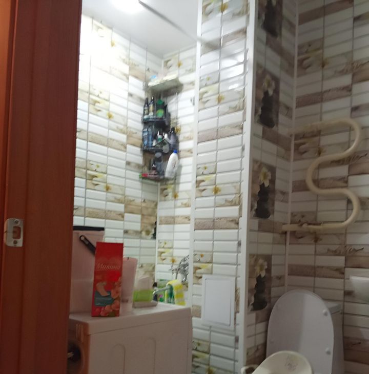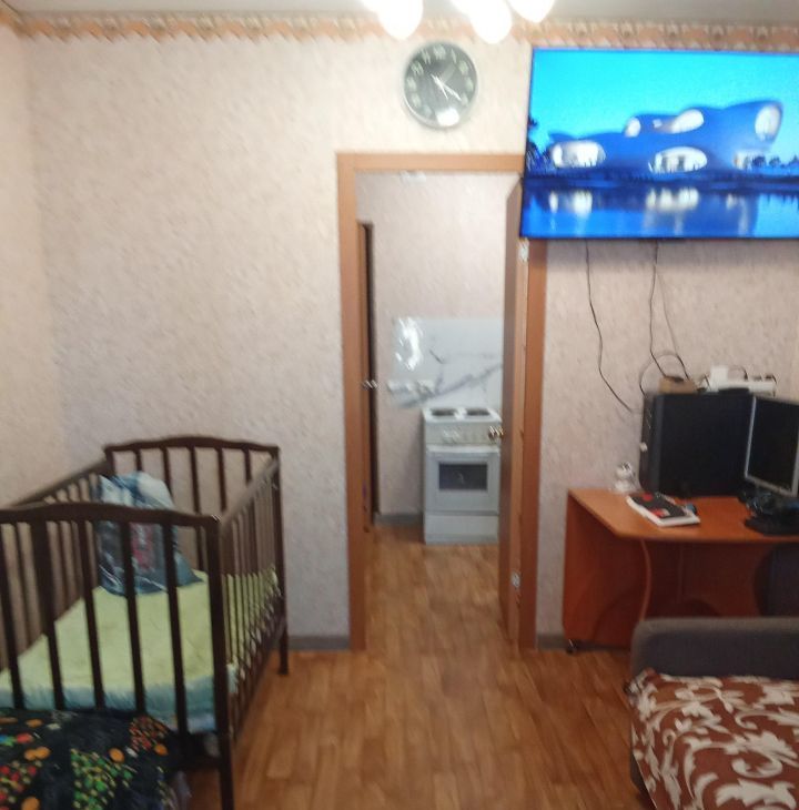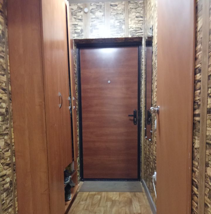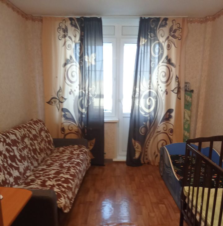 В квартире косметический ремонт: на стенах обои, на полу ленолиум, потолок под побелку, пластиковые окна, застеклённый балкон. Санузел совмещённый. Так же частично остаётся мебель!