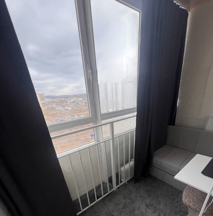 Главная фишка: Утепленный балкон-кабинет с диваном и шкафом. Идеальное место для работы или отдыха. В сильные морозы используются обогреватели (предоставляем), в остальное время — полноценная комната.