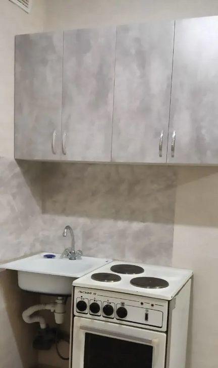12 этаже. В квартире сделан ремонт. Имеется кухонная плитка, пара кухонных шкафчиков.