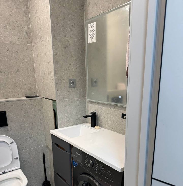 Санузел совмещен, новая стиральная машина автомат.