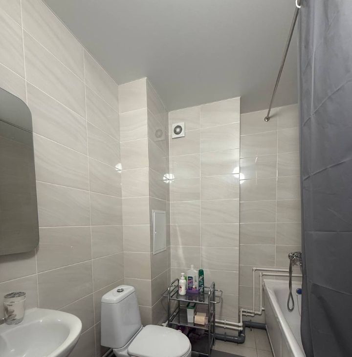 В квартире есть все необходимое для комфортного проживания: косметический ремонт, современная мебель на кухне и в комнате, а также встроенная техника — холодильник, телевизор и стиральная машина. Просторный совмещенный санузел оборудован ванной.