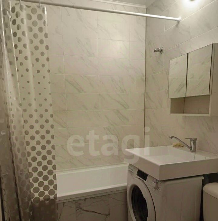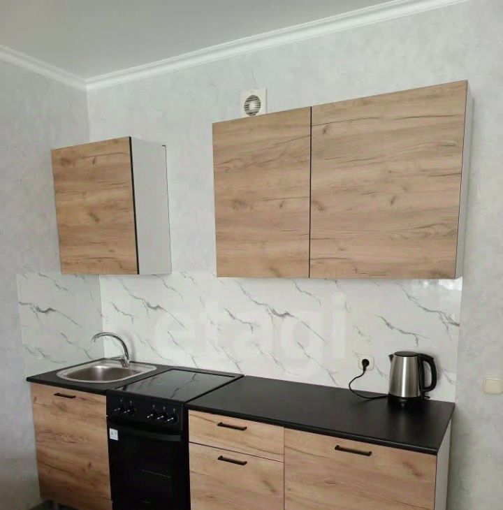 В квартире есть прихожая, кухонный гарнитур, плита стеклокерамика с духовкой, диван, стол, 2 стула, шкаф, тумба для ТВ, телевизор (кабельное), холодильник, микроволновка, чайник, , стиральная машина, шкафчик навесной в ванной, сушилка напольная для белья.